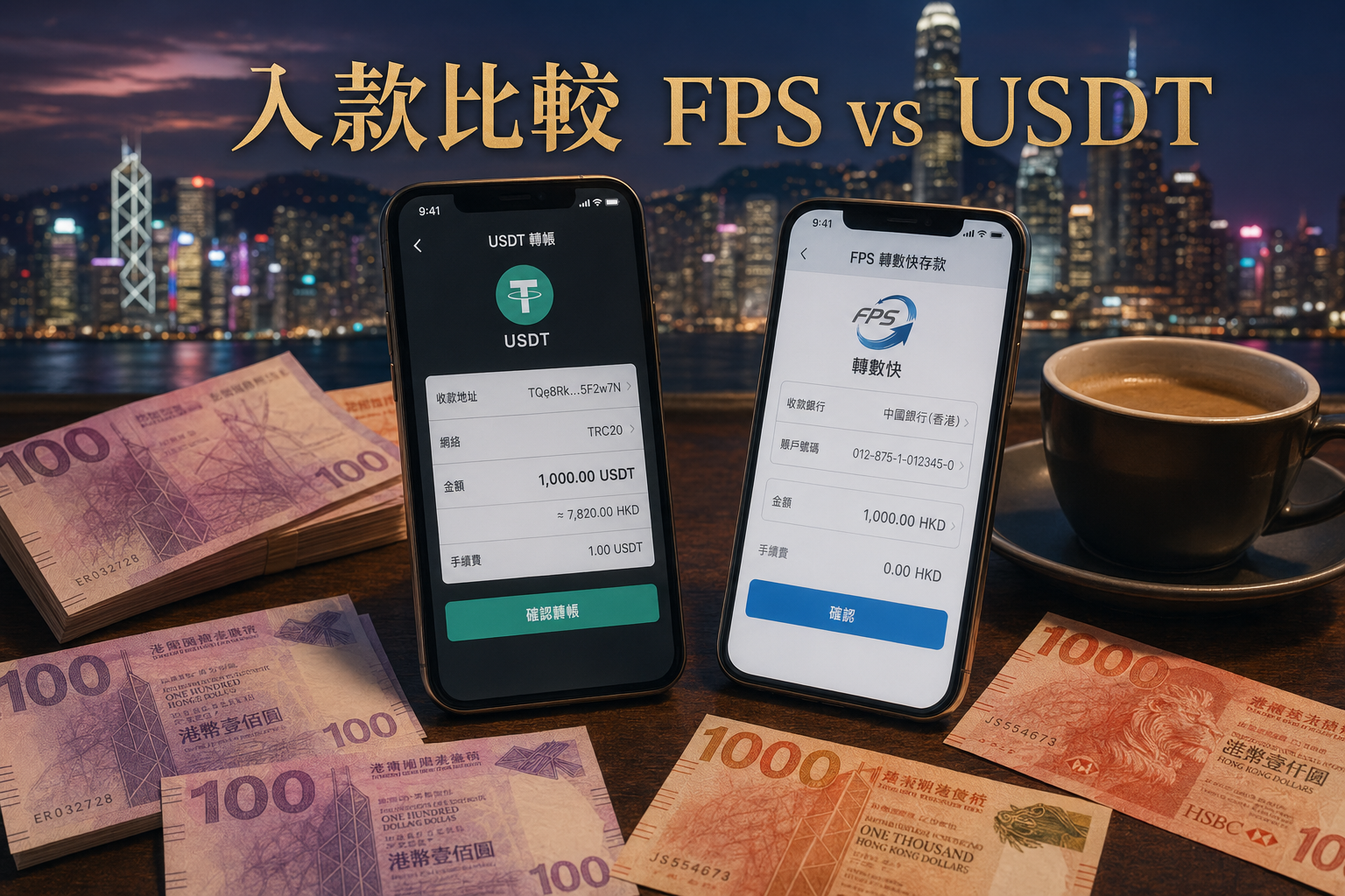 FPS(快速支付系統)和 USDT(泰達幣)是香港玩家最常用的兩種入款選擇。FPS 依賴本地銀行網絡,以港元結算;USDT 則是一種與美元掛鉤的穩定幣,透過區塊鏈轉帳。本文將從六個維度詳細比較兩者,幫你根據自己的需求選擇最適合的入款方式。